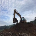卡特彼勒323D挖掘机挖土,大货车配合运料