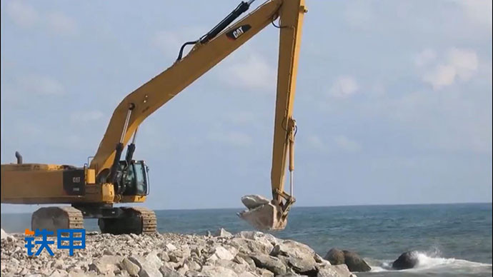 卡特390F挖掘机用镊子夹板砖,一点一点慢慢啃