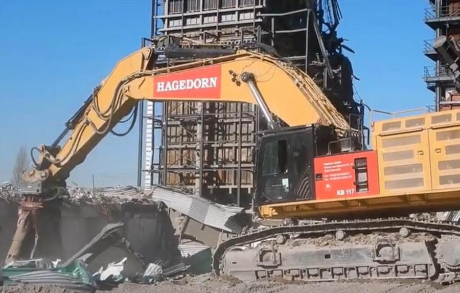 卡特390F用液压剪撕扯发电厂,整出一座废铁堆