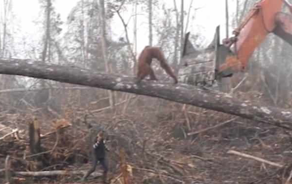 印尼一猩猩与挖掘机近身“肉搏”保卫家园