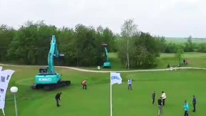 开挖掘机来打高尔夫比赛,2个技术最牛的挖掘机驾驶员!