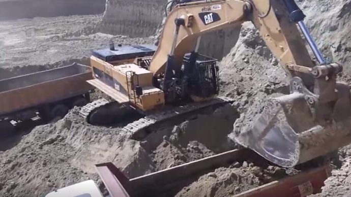 开这么大的挖掘机装载小卡车,这搭配任性了!
