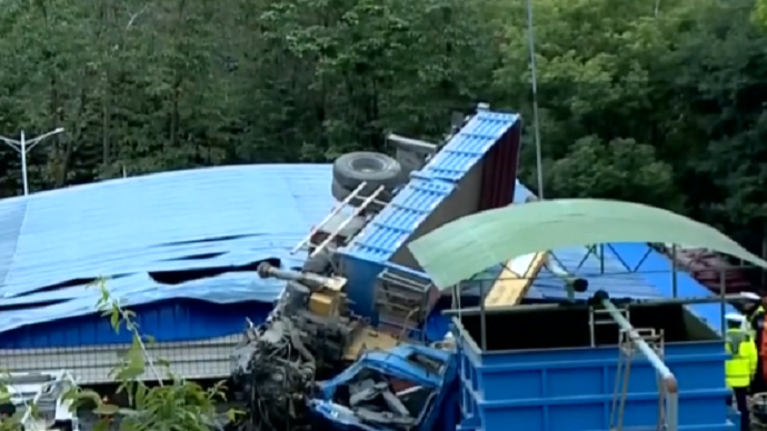 重庆:吊车凌空飞行20米冲上房顶 相关部门紧急救援