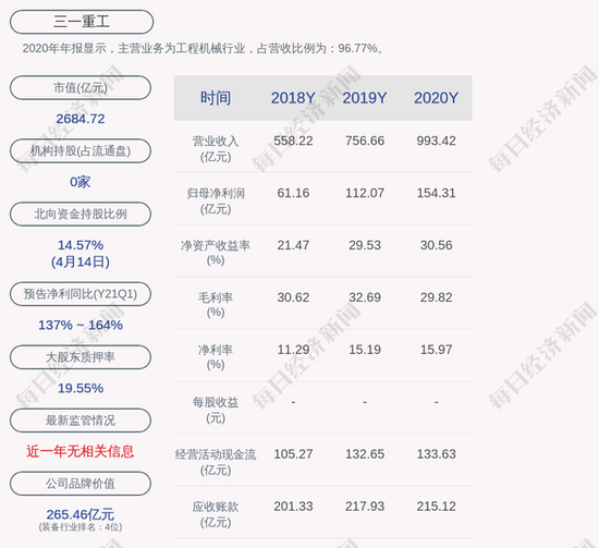 前瞻!三一重工:预计2021年第一季度净利润为52亿元到58亿元