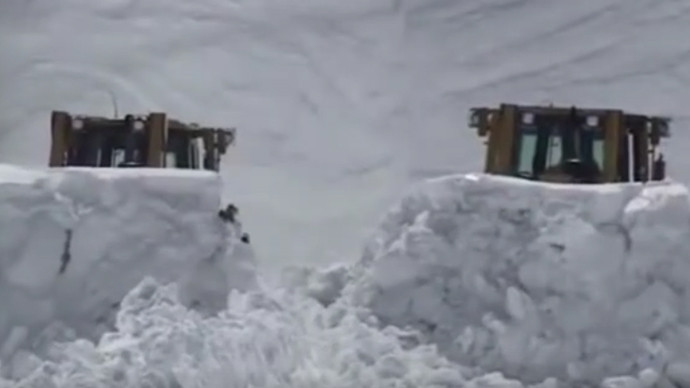 【眼界】风里雨里我推土机超给力 十几米深大雪不在话下