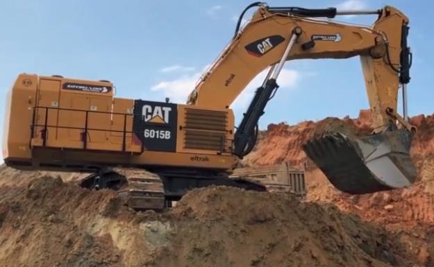 今天我要介绍的就是一台不常见到的挖机,只有矿山才有他的身影。 他就是卡特6015B液压挖掘机, 采用反铲结构,大臂长度7.6米,小臂长度3.4米,标配8.1立方,按工况需求,斗容可配备7.4立方到10