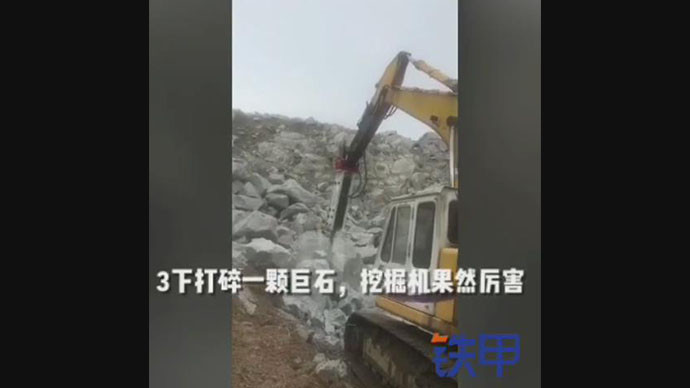 【甲友圈视频】3下打碎一颗巨石,挖掘机果然厉害!
