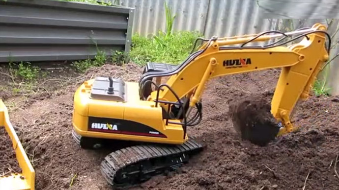 实拍:遥控挖掘机模型,给卡车装土,孩子还喜欢这个玩具