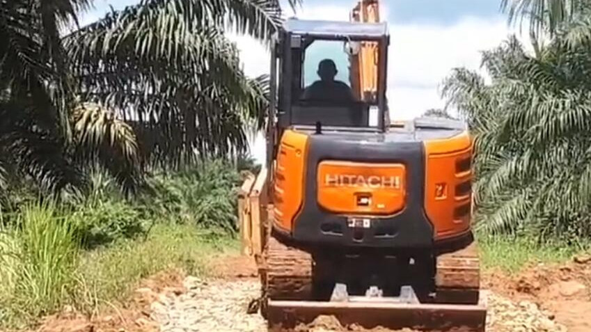 挖掘机在泥泞道路上扭扭捏捏,兄弟们知道他在干啥吗?