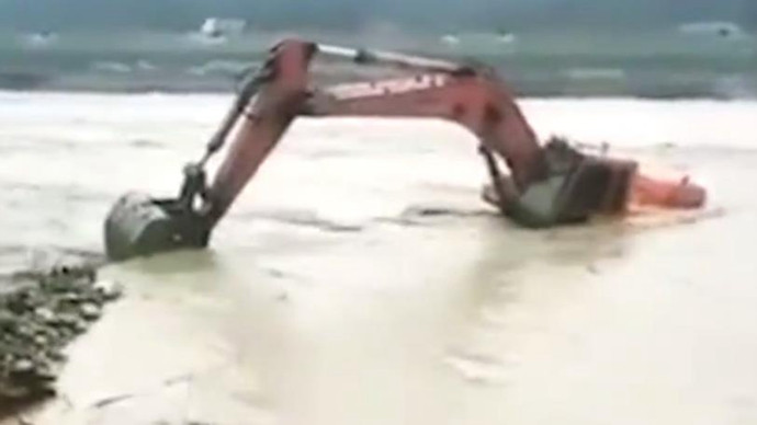 这也可以?挖掘机在河里干活,水里全是泥浆,太脏了