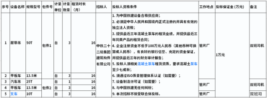 中铁二十二局集团建筑构件有限公司设备租赁项目公开招标