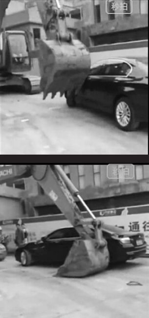 工程款引纠纷 挖掘机“横扫”宝马和Jeep