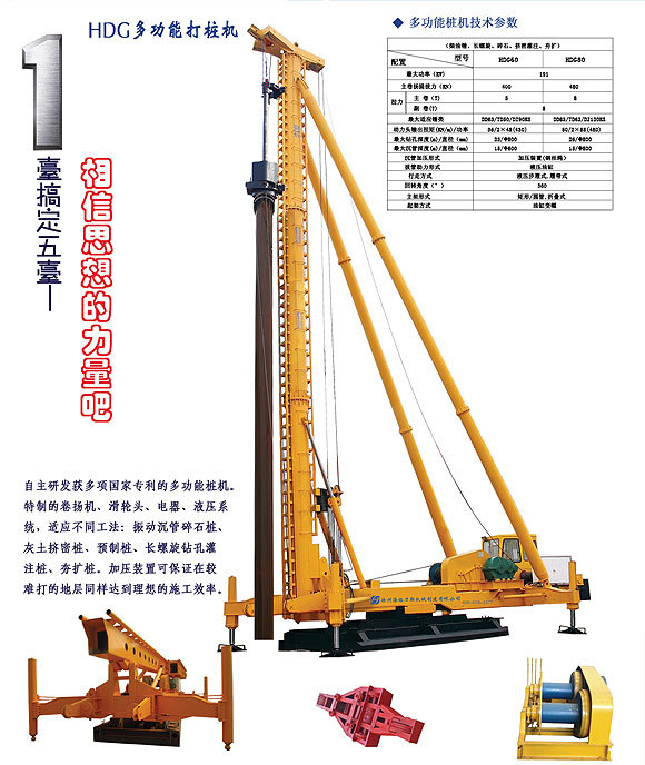 河北五星电力设备有限公司研制生产的抗洪抢险装备--多功能液压动力站式打桩机(植桩机)使用“液压工作站”做为打桩作业的动力源,具有快捷、简便、移动迅速、动力强劲、打桩作业迅猛的显著优势! 与人