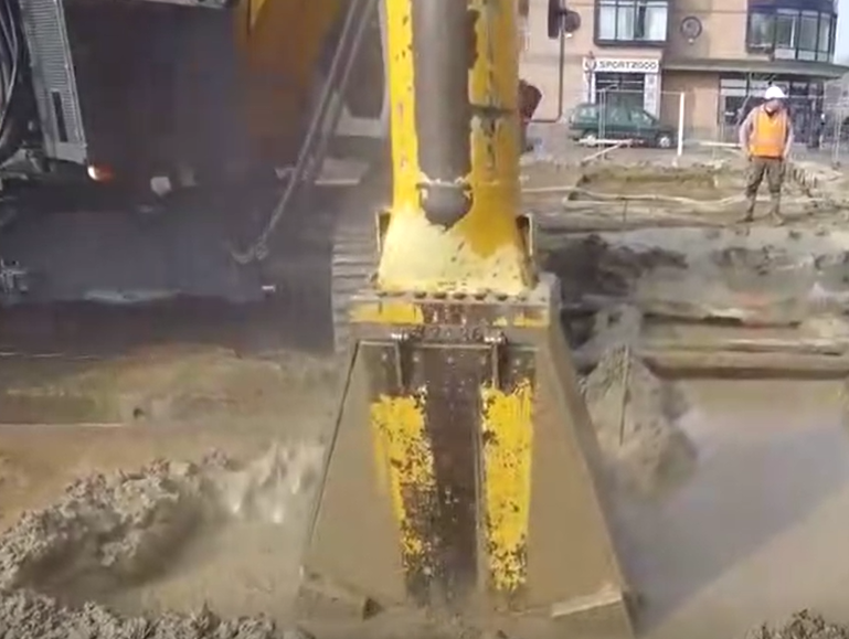 探入水中的大型挖掘机械臂挖掘怎样时的场景