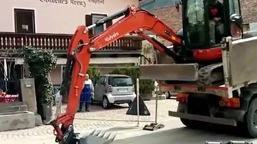 挖掘机下卡车,这是个技术活,老师傅才敢这样下车!