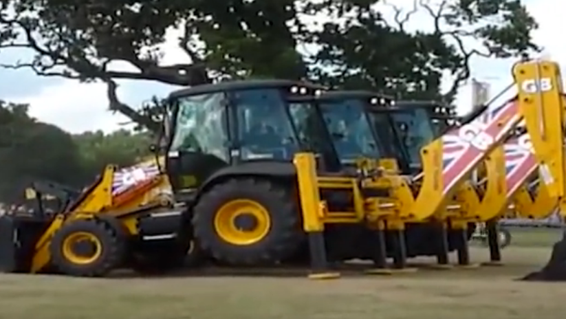 一群老司机开挖掘机表演,这冒火花是“烟花”?