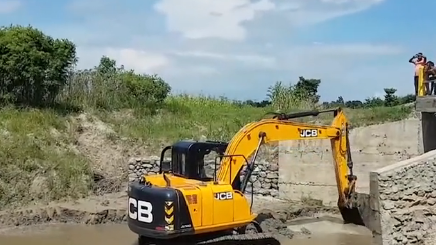 挖掘机在河流工作的视频,被一群人围观好尴尬!