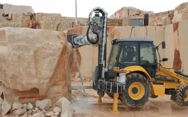 农村牛人对挖掘机的神改装,从此大理石切割不费劲!