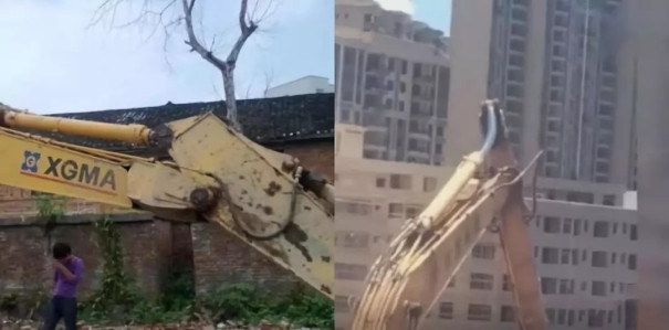这是我见过大臂最长的挖机,拆房子只是分分钟的事
