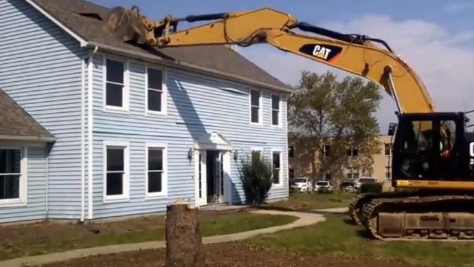 老外的房子真好拆,挖掘机扒拉几下就拆完了