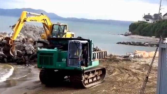 大型超级履带式卡车, 车斗可360度旋转, 专门运输大石头!