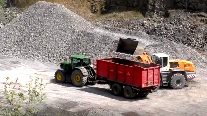 德国进口的装载机在采石场工作,这机器很给力!