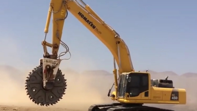 挖掘岩石开沟机,这钢铁手指机械,能抓破1米厚的土!