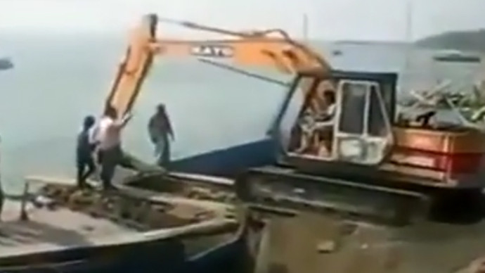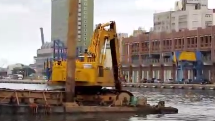 实拍 挖掘机坐船驾驶技术不好就掉河了