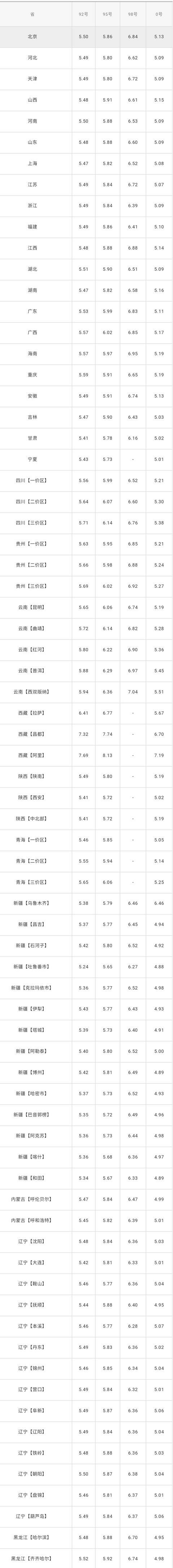 全国油价调整信息:1月16日调整后:全国92、95号汽油价格表