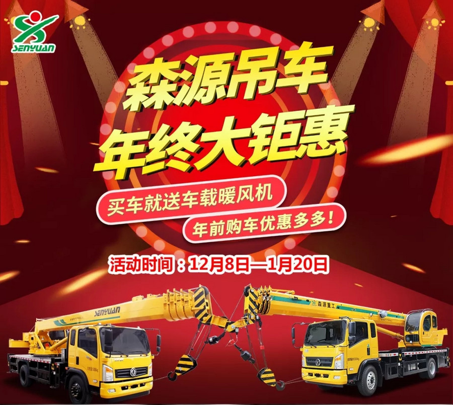 森源吊车年终大钜惠,年前购车优惠多多!交强险、暖风机、支腿垫板送不停!
