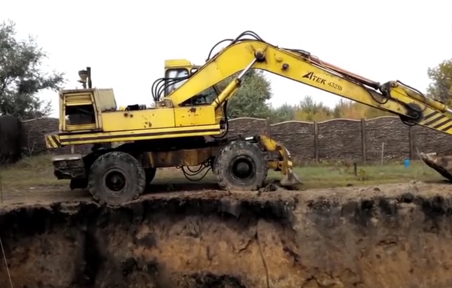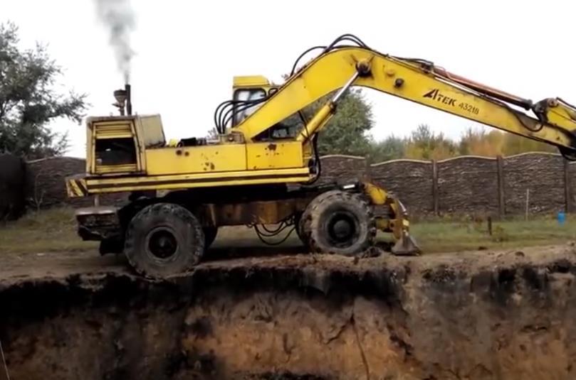悲剧的挖掘机,发现不对劲,想走却走不动,眼睁睁的看着掉入深坑
