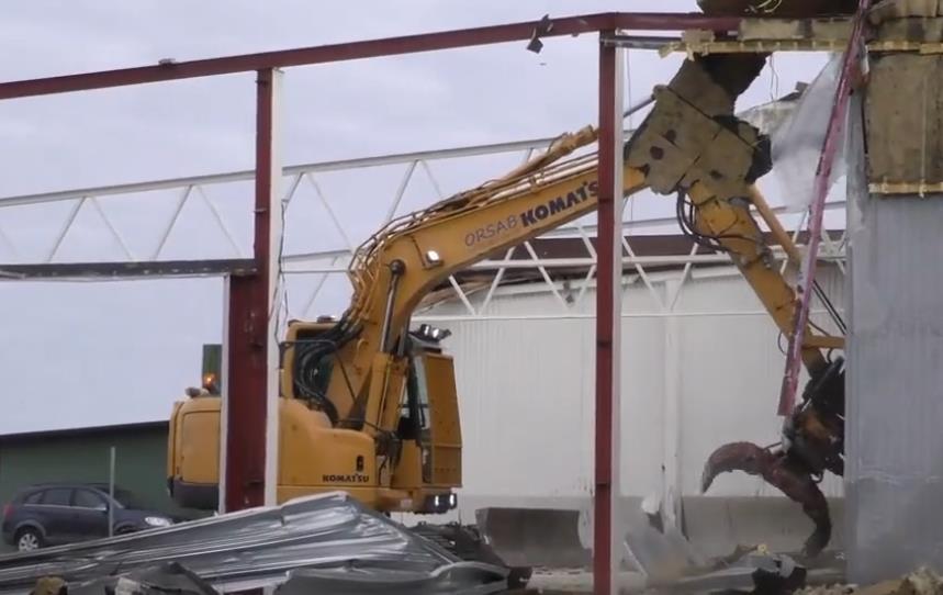 小松挖掘机用液压钳揭顶,铁皮完成当纸皮开撕