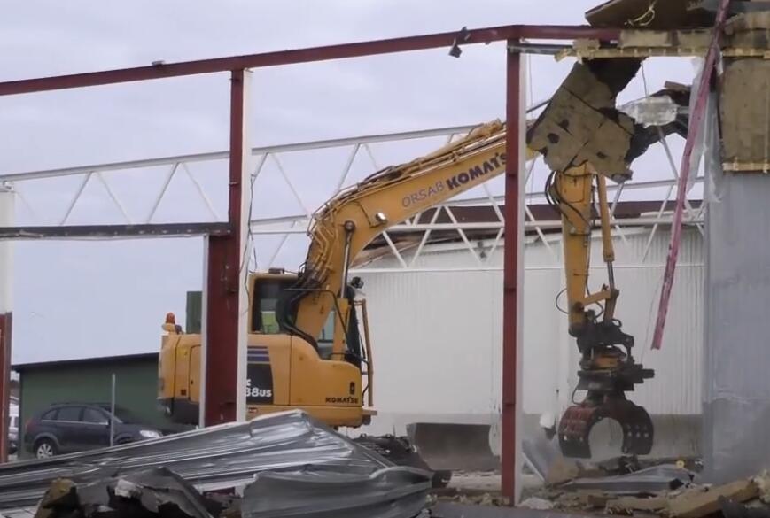 小松挖掘机用液压钳揭顶,铁皮完成当纸皮开撕