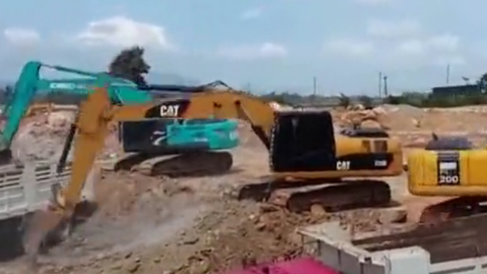 卡特和神钢挖机正在进行比拼,小松你跑来干嘛?感觉就是来打酱油的