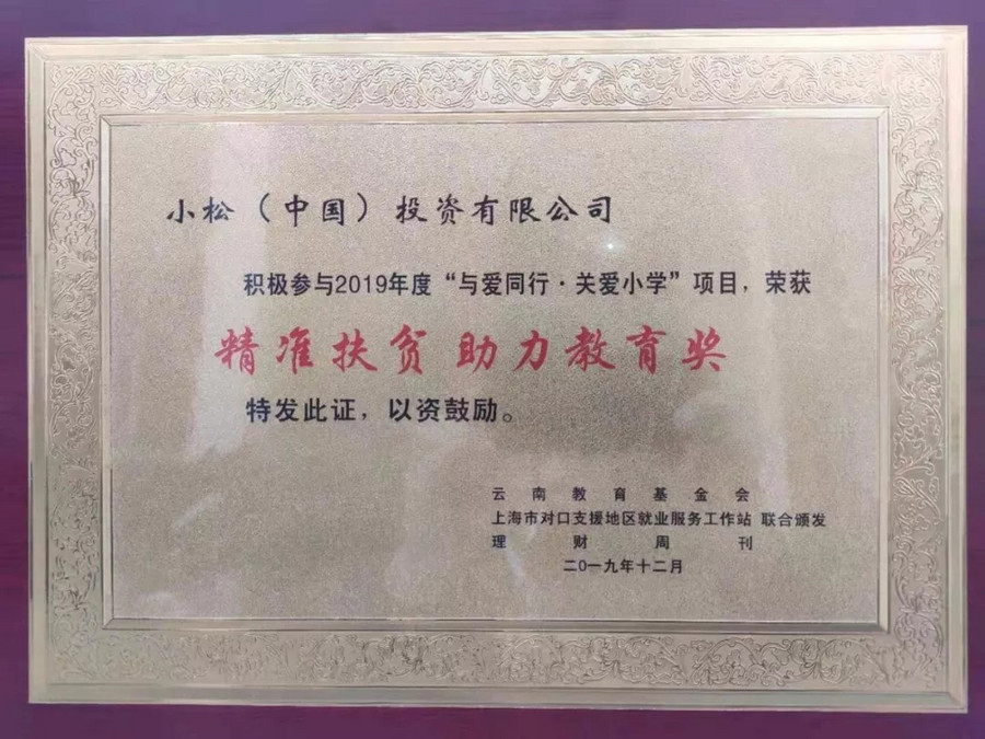 小松(中国)荣获“精准扶贫·助力教育奖”