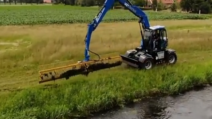 民间牛人发明的大型除草机,水沟除草机