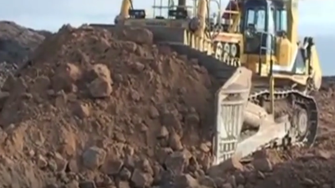 小松PC5500液压挖掘机正铲挖掘机装载翻斗车,速度真不是一般的慢