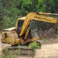 小松得机器是我的最爱了,首先声明不是崇洋媚外啊!但确实优秀!皮实抗造。 看看我的第一台96年的小松50,这车现在还干着活,我换过一个洋马488的发动机。劲头贼大,省油,分配器是两体的。这个拐臂让我挖了