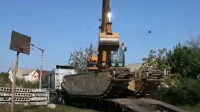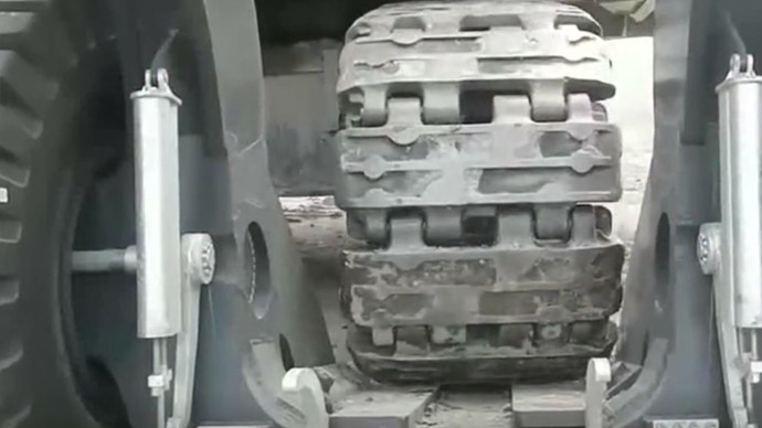 挖掘机在泥地中这样施工,下泥潭前要先变形,穿上“暗金装备”