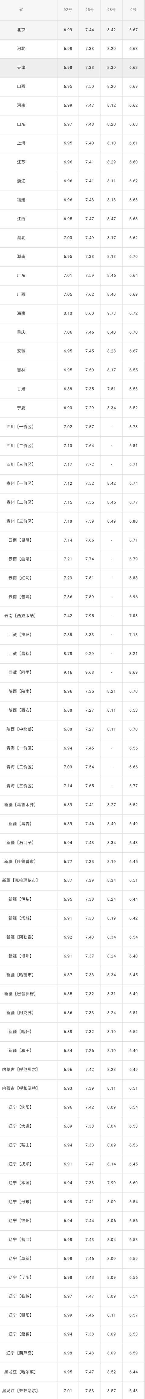 全国油价调整信息:6月1日调整后:全国92、95号汽油价格表