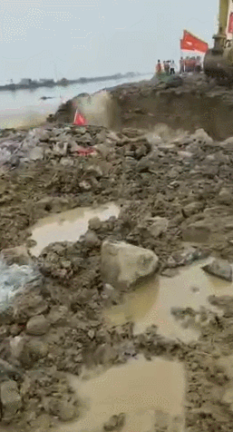 太惊险!决堤后 ,挖掘机瞬间被冲走…