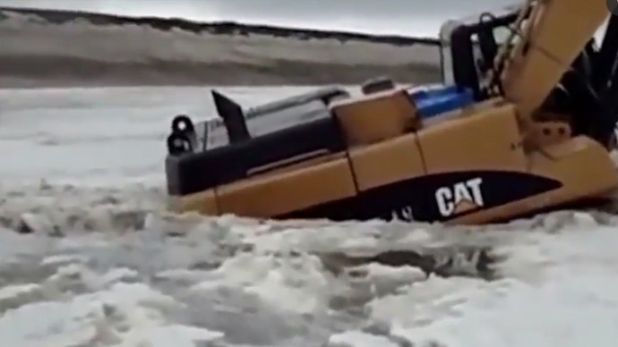 可怕工人将挖掘机开进了泥坑 挖掘机雪地受困
