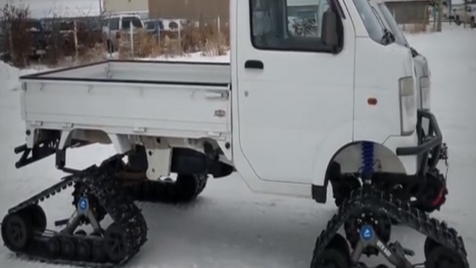 神奇的小货车, 四个履带链代替车轮, 安装刮土板变清雪神器