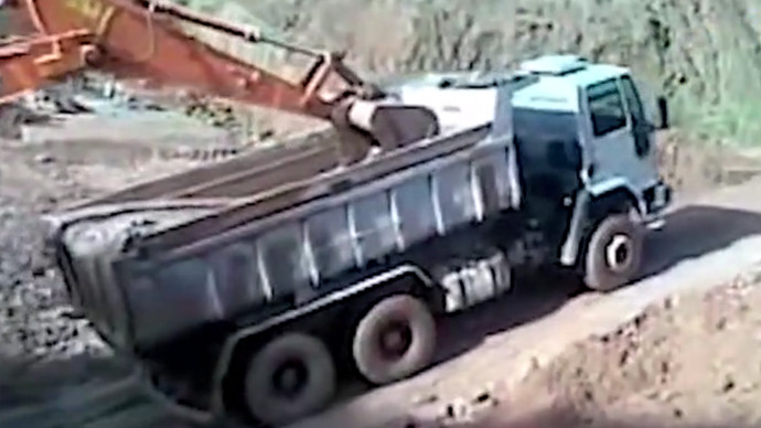 这群货车司机要钱不要命,挖掘机驾驶员看着都怕!