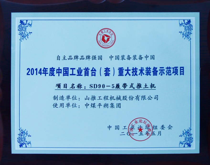 山推SD90-5获中国首台重大技术装备示范项目称号