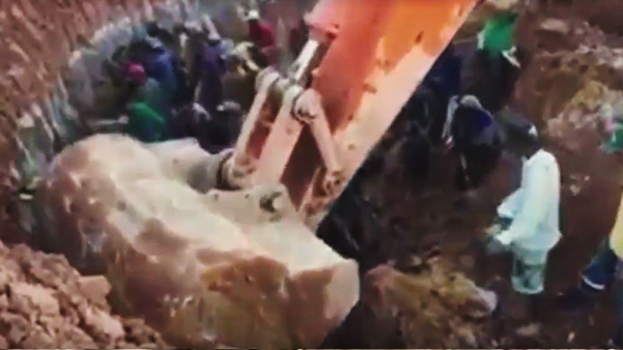 【眼界】众人疯狂抢宝 挖机帮大忙