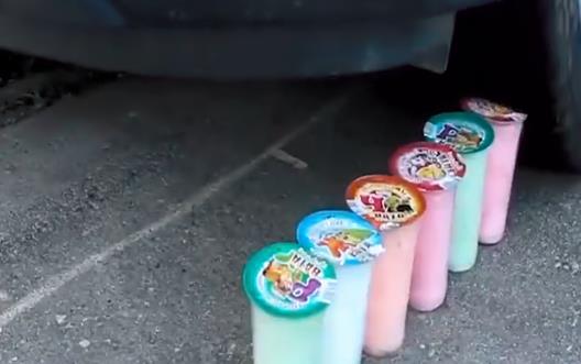 趣味实验:汽车碾压奶茶,只想说:浪费可耻,放着我来!