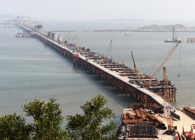 方圆参建平潭海峡大桥的水上平台搅拌站