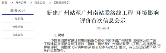 广州站至广州南站联络线工程环境影响评价首次信息公示