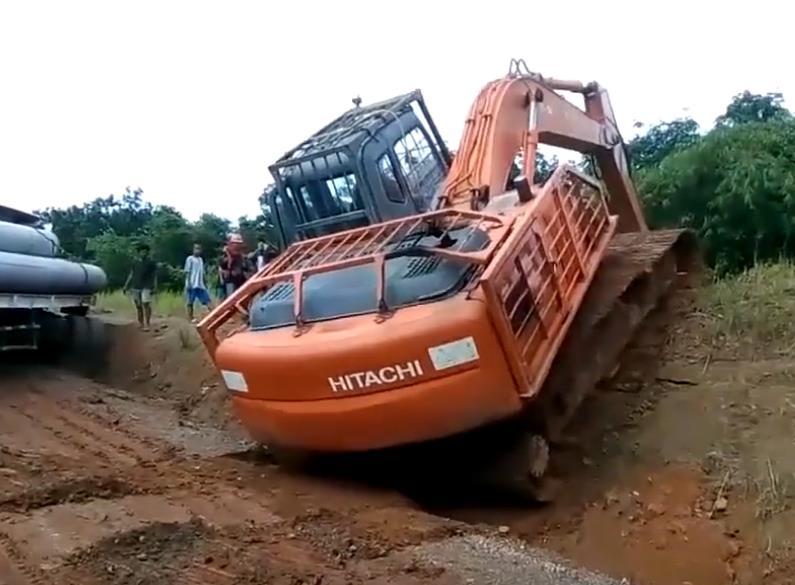 互帮互助,货车跑不动了,挖掘机来助它一臂之力